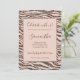 Blush Peach Chocolate Brown Zebra Print Glitter Invitation