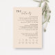 This chic and modern wedding details enclosure card features a fully customisable text and a visual timeline for the order of the day. A contemporary set of fonts in a brown-black font is set against an elegant blush peach background. This card forms part of a modern minimalist wedding collection of easy to use, mix and match neutral-coloured stationary for all seasons.