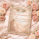 Celebrate her Quince in timeless elegance with this spanish royal-themed invitation. Designed with a blush-pink satin background and pearlescent sheen, this invitation features a radiant crystal tiara, cascading pearl strands, and delicate gold accents—exuding luxury and feminine sophistication. The spacious, uncluttered layout is perfect for including both English and Spanish text, making it ideal for multicultural celebrations. The coordinating back-of-card design continues the theme with soft shimmer and refined pearl details—ready for reception info or additional text. A flawless choice for a formal, majestic Quinceañera.