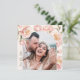 Elegant floral Save the date invitation, square photo invitation, featuring blush pink peonies on boho arch.