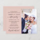 Budget-friendly blush pink elopement or private wedding announcement and reception invitation that features your photo and "Happily Ever After Party" in a mix of simple typography and a chic script with swashes. Personalise your party or reception details and add your names in a signature-like script. On the back, input the URL address of your wedding website to generate a QR code that your guests can scan to RSVP online.