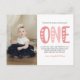 Modern, simple and elegant girl first birthday thank you postcard. Design featuring blush pink typography one , thank you message and a photo.