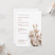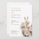 This contemporary wedding invitation features blush pink white 3 dimensional boho wildflowers on a white background.