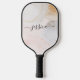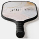 Modern blush pink abstract shapes black script name women's pickle ball paddle. Personalise with your name.