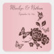 This blush pink and brown sticker/envelope seal with brown flowers and butterflies matches the wedding invitation and other items shown below, and is a perfect way to send out a beautifully coordinated wedding invitation, or you can use it to attach to your wedding favours.