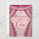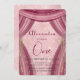 Blush Pink and Burgundy Marsala First Birthday Turning One Curtains and Sparkling String Lights Birthday Party Invitation. This invitation is perfect for a Blush Pink, Gold and Burgundy themed Turning 1 for a Girl Birthday Party.