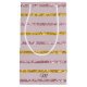 Features glittery blush pink and gold stripes on a blush pink background. Personalise with an initial.