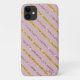 Features glittery blush pink and gold stripes on a blush pink background. Personalise with your initials.