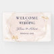 An elegant Wedding Reception Hanging Banner designed with Blush Pink background, Navy text and Gold highlights. The text includes: Welcome To Our Wedding, The Couple's First Names and Wedding Date. To personalise, simply insert your details into our easy template, replacing the sample text. Be sure to view the entire Blush Pink and Gold Wedding Collection for matching cards and accessories.