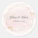 An elegant Classic Round Wedding Sticker designed with Blush Pink background and Gold coloured highlights. The text includes: The Bride and Groom's First Names and Wedding Date. To personalise, simply insert your details into our easy template, replacing the sample text. Be sure to view the entire Blush Pink and Gold Wedding Collection for matching cards and accessories.