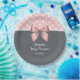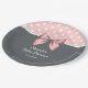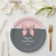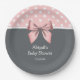 Blush Pink and Grey Polka Dots Bow Baby Shower Paper Plates.