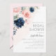 Blush Pink And Navy Blue Rose Boho Bridal Shower Invitation