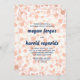 Pink and blush confetti dots rehearsal dinner invitation with navy blue text.