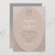 This elegant blush pink and silver wedding invitation features a sophisticated monogram at the top and a delicate silver floral border. The blend of blush and silver tones creates a refined, romantic look, perfect for classic and formal weddings. The timeless design makes it an excellent choice for couples seeking an elegant yet versatile wedding invitation.