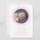 Announce your little one in the sweetest way with this blush pink newborn birth announcement featuring a delicate ornamental frame and soft script typography. The circular photo layout beautifully highlights your baby’s portrait, while the clean, minimalist design keeps the focus on what matters most.