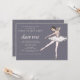 Formal, feminine and elegant Sweet 16 party invitation features a beautiful ballerina. She is dressed in a sparkly blush gold and white tutu. Pink roses and a stage curtain frame her. The text is also soft pink. The girl's name is written in a large modern font. The deep taupe background makes the soft pink tones really pop. The invitation back is the same taupe, but with a delicate all-over pink floral pattern. There is a hint of this pattern along the blush pink roses border.