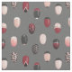 Gray fabric with a pattern of nails painted in blush pink, black, and burgundy in different styles, like silver hearts, ombres, stripes, french tips, geometric designs, and leopard print.