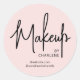 Blush Pink Black Script Makeup Business Product and Promotional Labels. Make a flawless impression when identifying your signature products and promotional marketing items with this blush pink makeup business sticker featuring a modern design, trendy black script typography and your contact information. The soft blush pink background paired with black script creates a fashionable, feminine aesthetic ideal for makeup artists, beauty influencers, estheticians, lash stylists and glam professionals. Fully customizable, this sticker lets you change the text and background colors to create a chic and memorable brand identity.