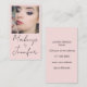 Minimal Blush Pink Black White Script Photo Makeup Business Card Verticle.