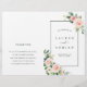 This wedding program features painted watercolor flowers in blush pink, white and green foliage with a rectangular frame. For more advanced customisation of this design, Please click the "Customise further" link. Matching items are also available. NOTE: You will need to fold them in half when they arrive.