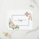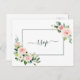 This wedding RSVP postcard features painted watercolor flowers in blush pink, white and green foliage with a rectangular frame. For more advanced customisation of this design, Please click the "Customise further" link. Matching items are also available.