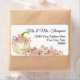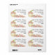 Return address mailing labels for wedding, baby and bridal shower invitations. Perfect for late summer and fall harvest events. Watercolor artwork was created by internationally licensed artist and designer, Audrey Jeanne Roberts. An elegant white pumpkin is surrounded with a bouquet of blush pink roses, peonies and wildflowers with gold glitter greenery and other leaf foliage. Copyright.