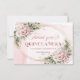 Elegant boho Quinceañera thank you card in blush pink and rose gold with floral eucalyptus greenery, perfect for expressing gratitude after a Sweet 15 celebration.