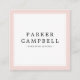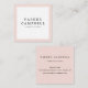 Elegant, professional business cards or personal profile cards with your name and title/company name printed on the front with a blush pink border along the edge of the card. On the back are customisable template fields for your name, title/company name/speciality and contact information. Black text on a blush pink background. A minimal and classy design for any industry