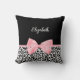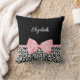 Blush Pink Bow Black White Leopard Print Pattern Cushion