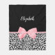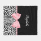 Blush Pink Bow Black White Leopard Print Pattern Fleece Blanket