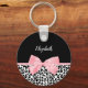 Blush Pink Bow Black White Leopard Print Pattern Key Ring