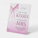 Invite your cherished guests to a sweet guessing game with romantic charm and heartfelt personalisation using this enchanting Blush Pink Bow Bridal Shower Guess How Many Kisses Game Pedestal Sign, where every detail adds to the fun and beauty of your party!