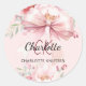 Blush pink bow florals monogram classic round sticker