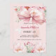 A girly blush pink background, decorated with a large pink bow and pink flowers. Personalise and add a name and party details.