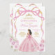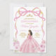 EDITABLE Blush Pink Bow Princess Gold Crown Quinceañera Invitation