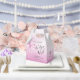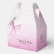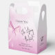 The back of the favour box continues the beautiful theme with the same delicate blush pink watercolor backdrop. A lovely blush pink watercolor bow is thoughtfully placed, mirroring the charm of the front design. Prominently displayed over this, you'll find the heartfelt "Thank you" in elegant, bold typography, beautifully complemented by the smaller font "for celebrating with us!". This ensures your message of appreciation and the charming design are visible from multiple angles, creating a truly cohesive favour.
