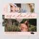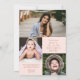 Elegant horizontal blush pink graduation invitation personalised with one photo on the cover and three more photo on the back. Double sided graduation invitation with a light pink background. 2 in 1 graduation announcement and invitation personalised with photos and the graduate's name in brass.