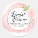 Blush pink watercolor wash with a single blush pink rose surrounds bridal shower written in a traditional script. The bride's name and the date follow in a classic font.