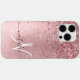 Blush Pink Brushed Metal Glitter Monogram Name Case-Mate iPhone Case