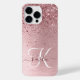 Blush Pink Brushed Metal Glitter Monogram Name iPhone Case