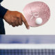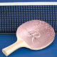 Easily personalise this trendy chic pingpong paddle design featuring pretty blush pink sparkling glitter on a blush pink brushed metallic background.