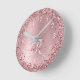 Blush Pink Brushed Metal Glitter Monogram Name Round Clock
