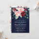 Blush Pink Burgundy Floral QR Code Navy Wedding Invitation