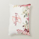 This elegant personalised accent pillow features a monogram and first name in modern pink and burgundy script. A watercolor arrangement of blush pink and burgundy flowers and greenery adorns the top border.