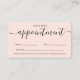 Keep your clients organised and stylish with our personalised appointment card, designed in a minimalist blush pink colour. The elegant heading "Appointment" in modern calligraphy graces the front, creating a chic and professional look. Below, customise your promotional text to keep your brand top-of-mind. On the back, include your contact details and a QR code for easy access to your services. Perfect for hair stylists, makeup artists, spa professionals, and beauty salons, this appointment card is both functional and fashionable. Ready to elevate your brand?