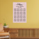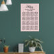 This blush pink calligraphy wedding seating chart poster is perfect for an elegant wedding. The design features a romantic and sweet flowing cursive font on a lovely and delicate light ballet pink background. This wedding poster includes enough room for up to 16 tables (160 guests). In addition to the placement of each guest, personalise this sign with the names of the bride and groom and the wedding date.