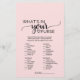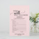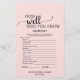 This blush pink calligraphy "what's in your purse" game is perfect for an elegant bridal shower. The front of the game card features "how well do you know the bride", and the back of the card features "what's in your purse". The design features a romantic and sweet flowing cursive font on a lovely and delicate light ballet pink background. Personalise the front of the card with the brides name and bridal shower date.