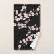 This elegant bath towel set features blush pink / dusty pink cherry blossoms on a black background.