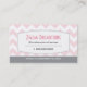 A pale pink and white chevron pattern is dominant on this card that features a bulging frame to hold business information. A grey panel on the bottom contains a website url or any other information. Further contact and business information prints on the back against a grey background accented by a chevron strip. A versatile card for consultants, creative businesses, home-based businesses plus many more. Available in alternate colours with matching products.