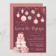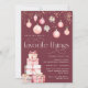 Invite friends to a Christmas or holiday themed favourite things party with this elegant and festive invitation, featuring watercolor illustrations in soft shades of blush pink on a rich sugar plum background. Your favourite things party details are topped by a garland of blush pink watercolor bauble ornaments, and flanked by a stack of wrapped Christmas presents. Personalise with your party details, including instructions for your guests on how many gifts to bring and their estimated value.